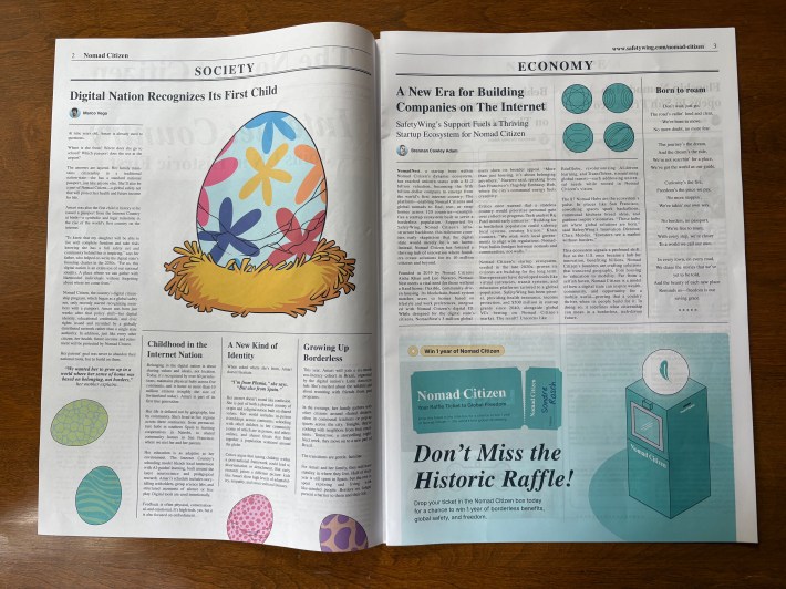 Dissent, it appears, is baked into the statehood fantasy of SafetyWing, an insurance tech startup that is currently (meaning, in the year 2025) handing out coffee, snacks, and marketing materials, including copies of The Nomad Citizen, at its month-long “pop-up embassy” at 717 Market St.