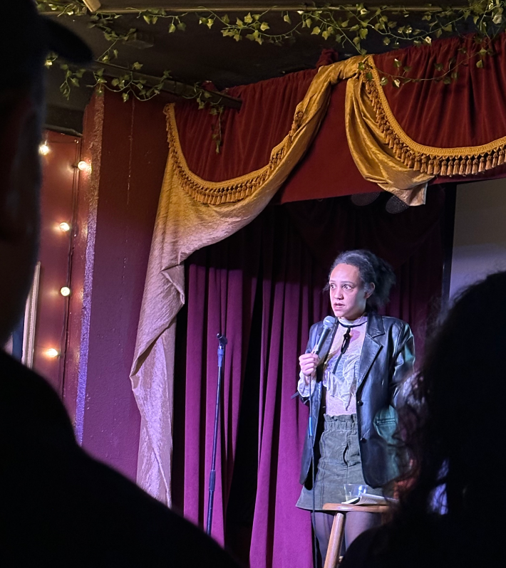 When he takes the stage,Taggart of StraightioLab, is charming and self-deprecating as he toggles between his notebook and his drink, making a meal of both. I envy the built-in safety net of a parasocial podcast audience giving the partly developed bits space to percolate, but I also wonder if that’s too creatively cushioned.