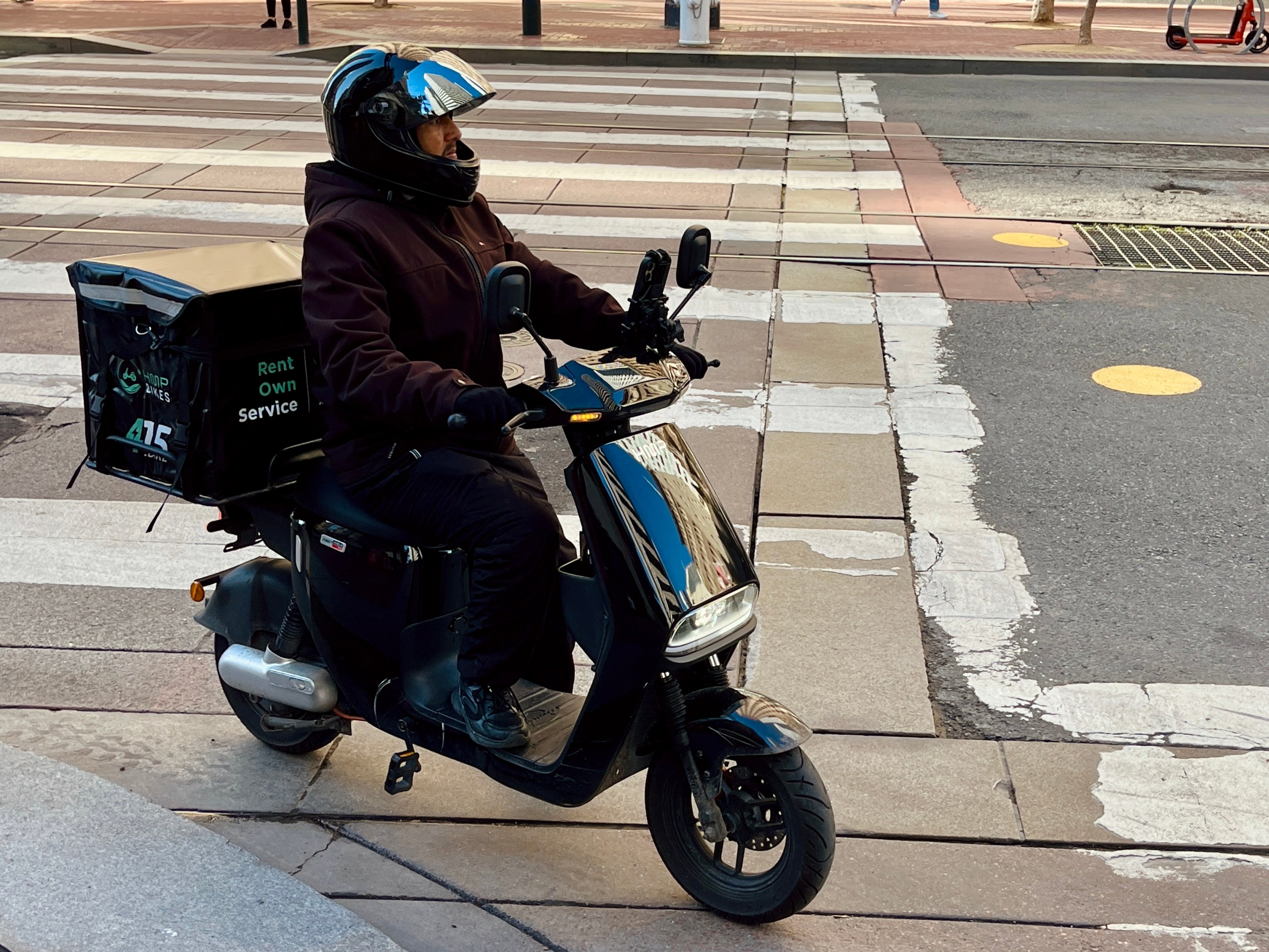 The HMP drivers I spoke to on Market Street pretty much all said the same thing: The e-mopeds are reliable, easy to drive, and don’t require paying for insurance.