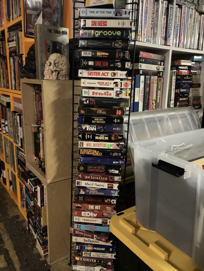 The basement contains everything you could imagine and many things you could not: instructional videos like How to Style a Scarf (1988), teen exploitation crapola like Heavy Metal Summer (1988), and porn parodies like Foreskin Gump (1994). Auteurs such as David Lynch and Francis Ford Coppola get their own sections. There’s even a display of San Francisco-set movies that could serve as a to-watch list for Walter Thompson’s column for us, San Francisco Plays Itself.