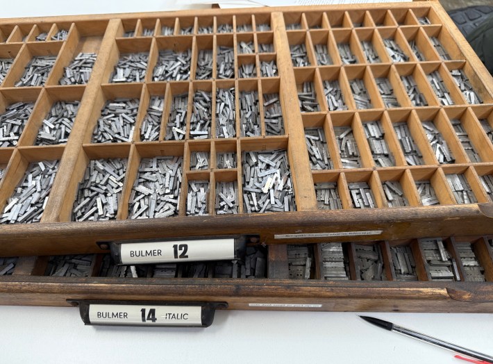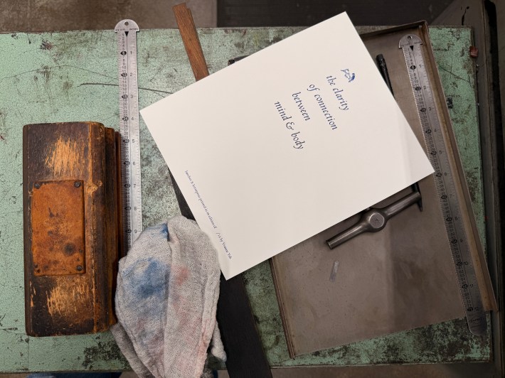 The mood in the studio was contemplative, and quiet, except for the plinking sound of people rummaging through letters, the clanking of pieces of wood used to keep the letters in place (also called furniture), and the clicking sounds of the old, metal printers. Letterpress can be time-consuming, even tedious. For those reasons, Yeh said, it’s also uniquely rewarding.