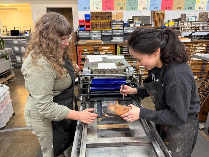 Yeh’s efforts were being overseen by her instructor, Thea Sizemore, who operates her own letterpress shop called Kavamore Press, which she operates out of an old grocery store in Berkeley.