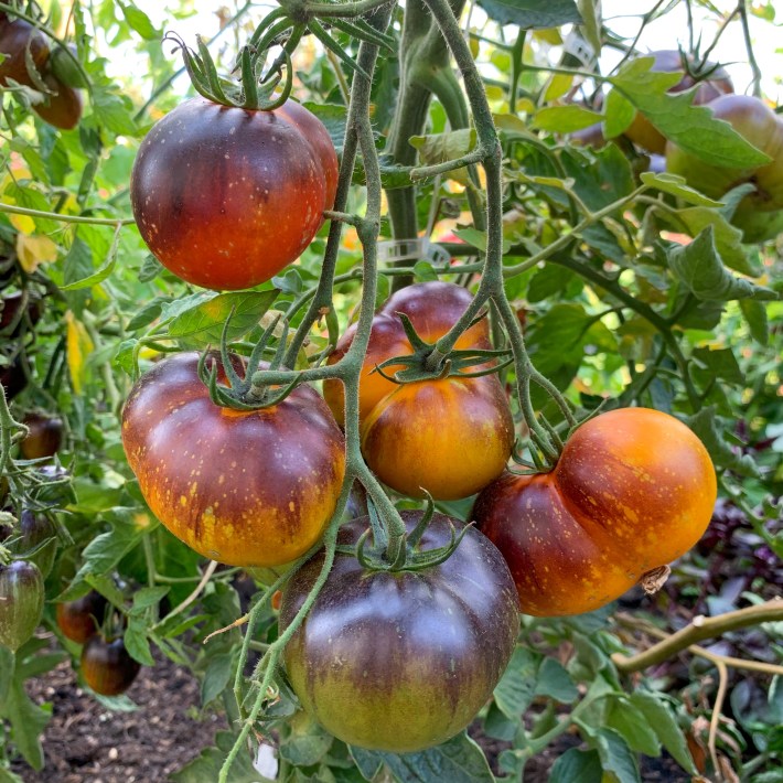 It’s been four months since his tomato plant sale in April, and backyards all over the Bay are bursting with his bounty. Recently, a couple dining at Chez Panisse flagged Huey down to show him a brown paper bag full of tomatoes they’d grown from his plants this summer.